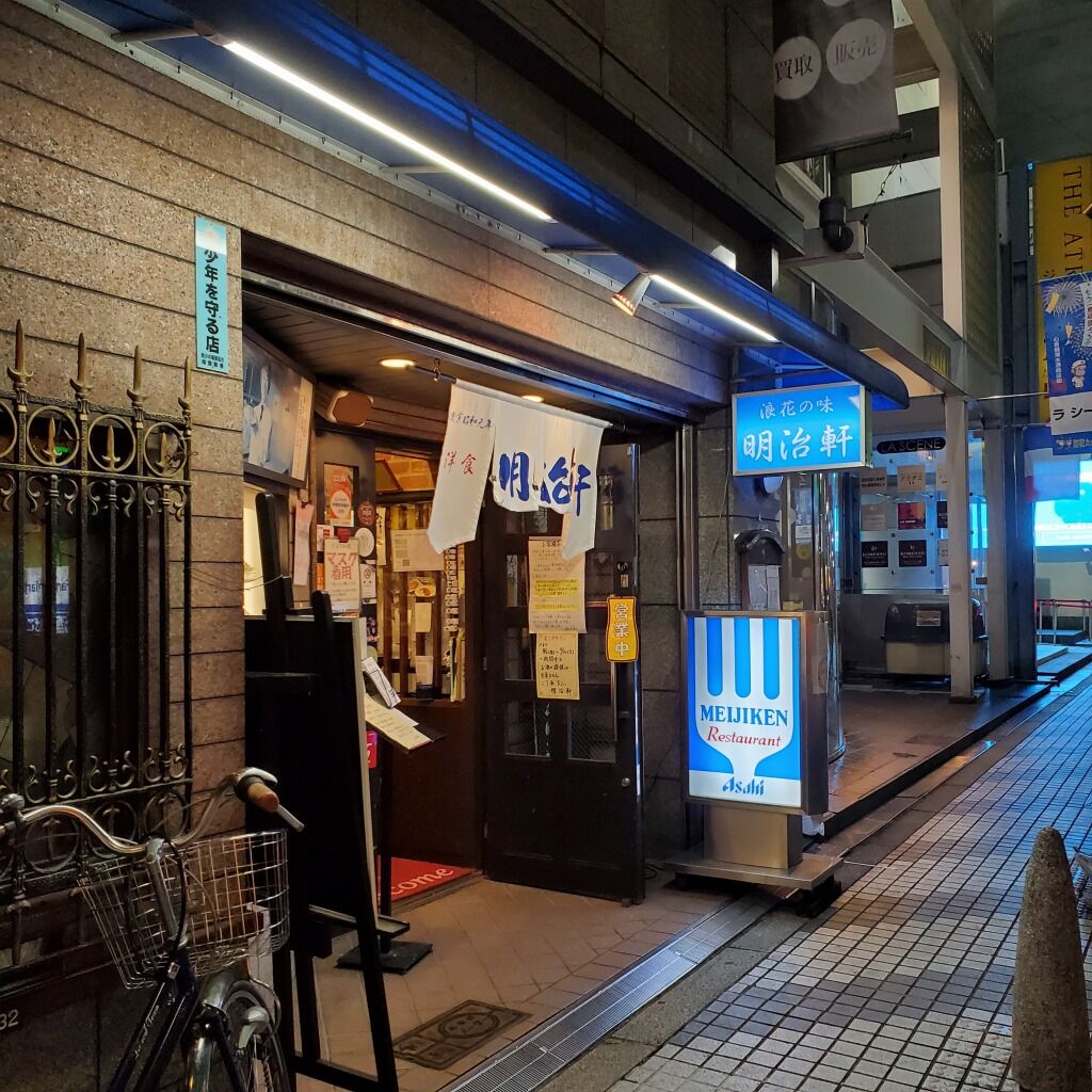 大阪東心斎橋の老舗洋食店 明治軒に行ってみた。野菜の冷製スープとハヤシライス&串5本セット♪ 2021年08月26日 18:30 今日は久しぶりに東心斎橋にある老舗洋食店の明治軒に娘と行ってみた。緊急事態宣言下でも営業してる。ただ20時には閉店やね。アルコールは出してなかった。野菜の冷製スープとハヤシライス&串5本セットを注文した。娘はオムライスと串5本セットやね。ここの串カツが実に良く出来てるねんなあ。野菜の冷製スープも良かった。おかわりしようかと思ったぐらい。ハヤシライスもいい感じ。マスクしてないと入店させてくれへん。 明治軒 (洋食 / 心斎橋駅、長堀橋駅、四ツ橋駅) 夜総合点★★★★☆ 4.0 ↓↓↓応援クリックよろしくお願いします 人気ブログランキング 「洋食」カテゴリの最新記事 「大阪ミナミ」カテゴリの最新記事 タグ :#大阪東心斎橋食べ歩き外食グルメ#老舗洋食店#明治軒#ハヤシライス串5本セット#オムライス串5本セット#野菜の冷製スープ#大阪タクシードライバーブログ#緊急事態宣言#口コミ情報体験記#感想レビュー体験談 < 前の記事次の記事 > コメント コメントフォーム 名前 コメント 評価する リセット リセット 顔 星 投稿する 情報を記憶