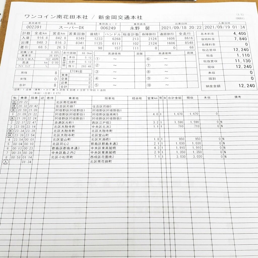 タクシーセンス抜群のNくん。約9時間勤務で12組28,820円。センス抜群のNくんでも今日はあかんかったみたい。とっとと退散やね。センスのいい人でもこんな日がある。