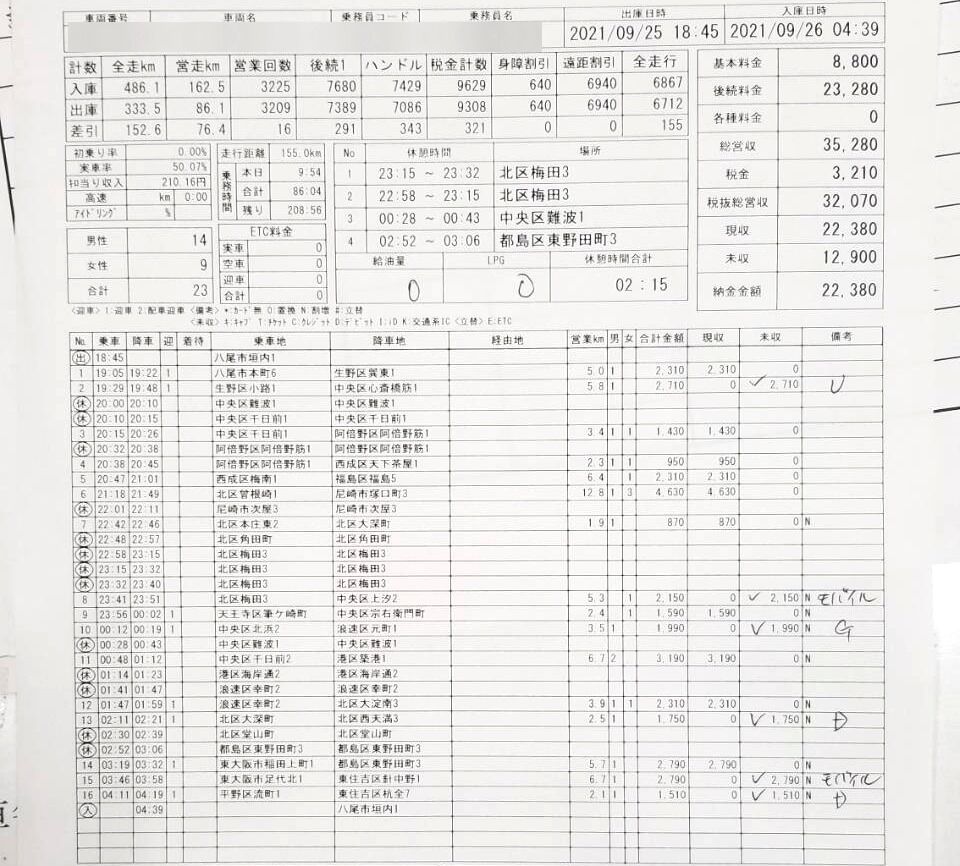 兎にも角にも今日も無事、無事故無違反で終わって良かった。タクシードライバーっていう職業はこれが全てやわ。これさえ続けてたらずーっと出来る。