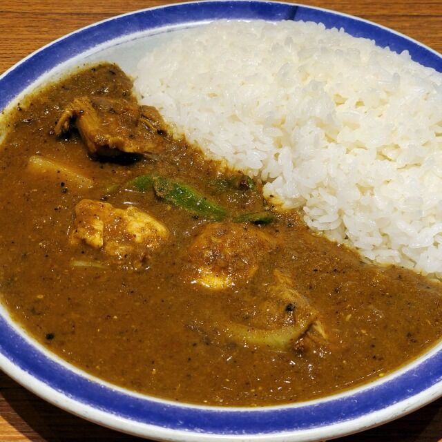 15時30分っていう中途半端な時間やったけど、他にもお客さんはいてた。人気店やね。チキンカリーを注文。辛さを聞かれて、ゼロでお願いした。水と一緒にじゃがいもが出てくる。無料みたい。そのまま皮ごと食べた。チキンカレーは辛さゼロでも結構ピリっと来た。スパイシーなインドカレーやね~♪
