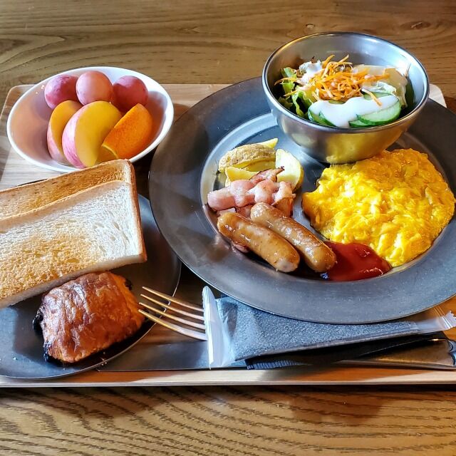今朝の朝ごはんは洋食を選択してみた。宿泊者は1,300円。もらった10ドルクーポンを使うと差額250円で済む。10ドルクーポン、その日しか使えないんで、面倒でついつい朝食に使ってしまう。アイスとかお菓子もあるねんけどなあ。