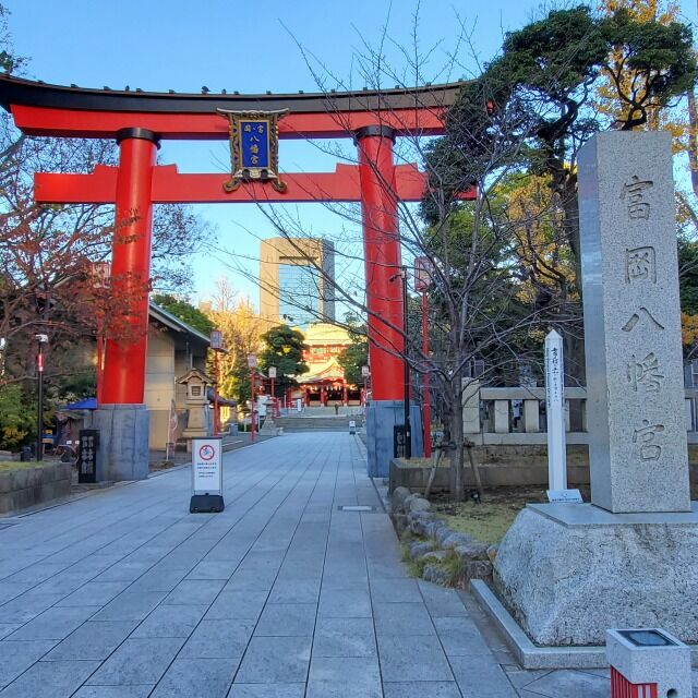 門前仲町駅の何番出口で降りたらいいかまで案内してくれる。オモテに出て、そこから徒歩やね。初めに富岡八幡宮やと思ってたトコが成田山で、右向いたら富岡八幡宮があった。