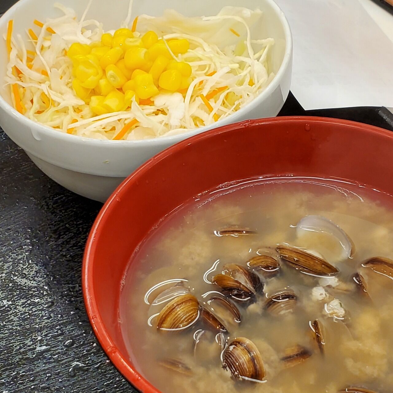 10年の開発期間は長すぎると思うけど、さすがに自信あるだけあって、なかなかに良く出来てる。ボリュームもあるなあ。並で十分やった。健康に気を使ってるんで、サラダとしじみ汁もいっといた。