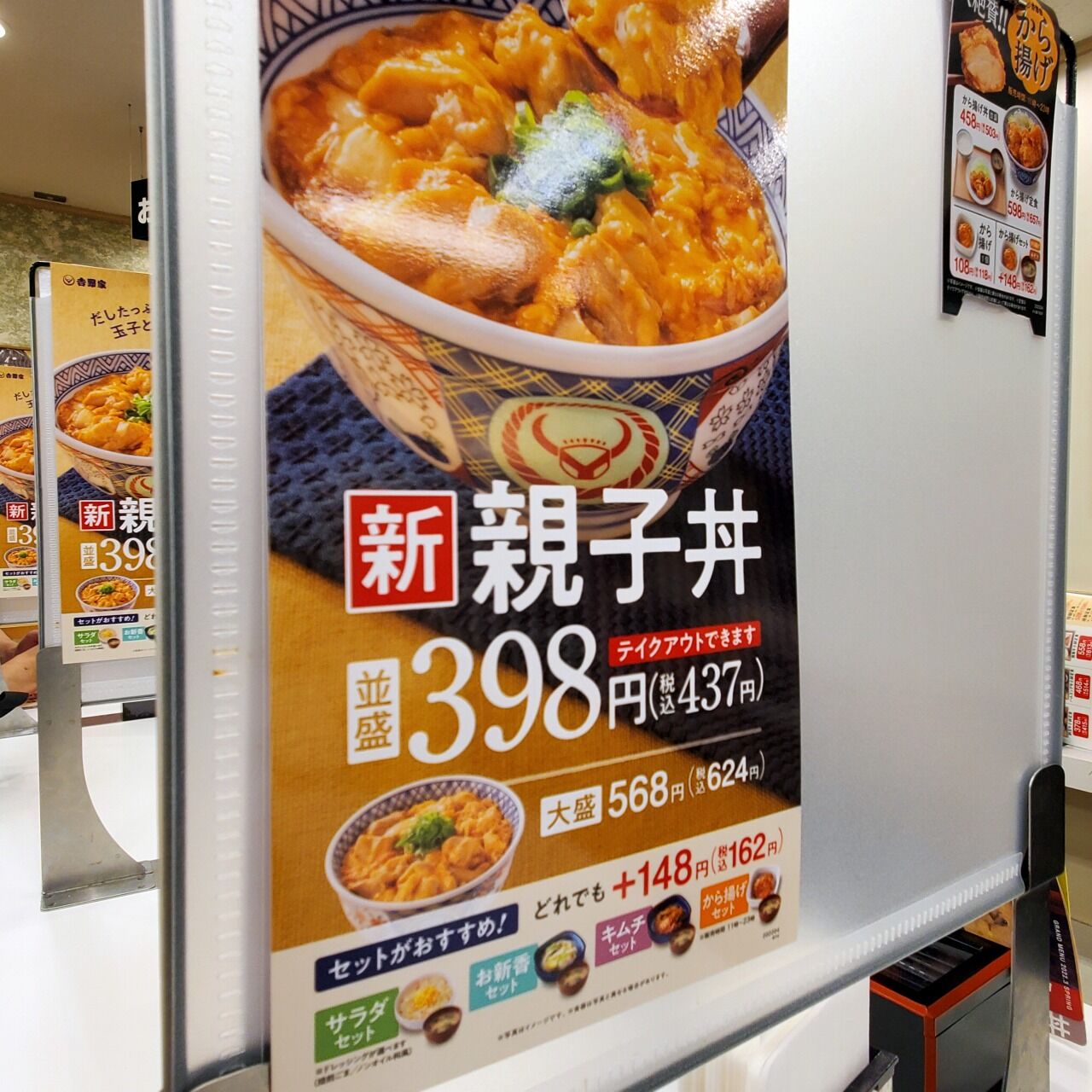 予想通り次々のアプリが鳴る。いい感じやね~♪ 迎車料金400円があるんで、1,000円以下になる事はほぼ無い。何件か乗せて、ハラ減ってきた・・・。吉野家がそこにある。開発に10年かかったらしい親子丼を食べに行ってみた。
