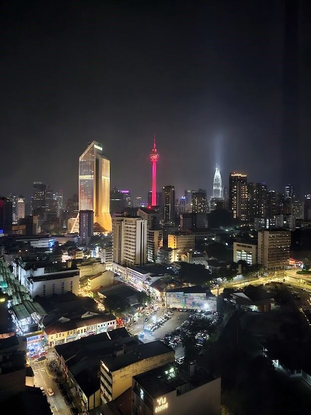 クアラルンプールは高層ビル群が結構あちこちにあるんで、夜景がキレイやねんなあ。高い建物とかにルーフトップバーが結構ある。高層のホテルとかに泊まってもいいカンジ。