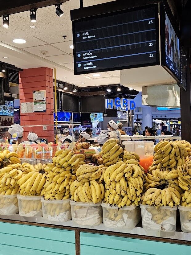 色んな料理がある。タイ料理は基本的に結構カライ。スムージーとかアイスもある。パスタ屋さんとかカレーショップもあって実にいい。とにかくリーズナブル。日本円で2~300円で食べれる。ミネラルウォーターは40円ぐらいやったんとちゃうかなあ。