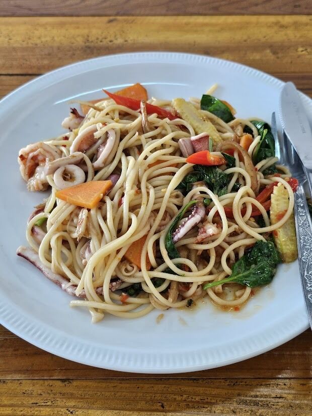 ランチはパタヤサードロード沿いのDA Restaurantでスパイシースパゲッティ。アーバーホテルのすぐ近くにお店はあるよ。