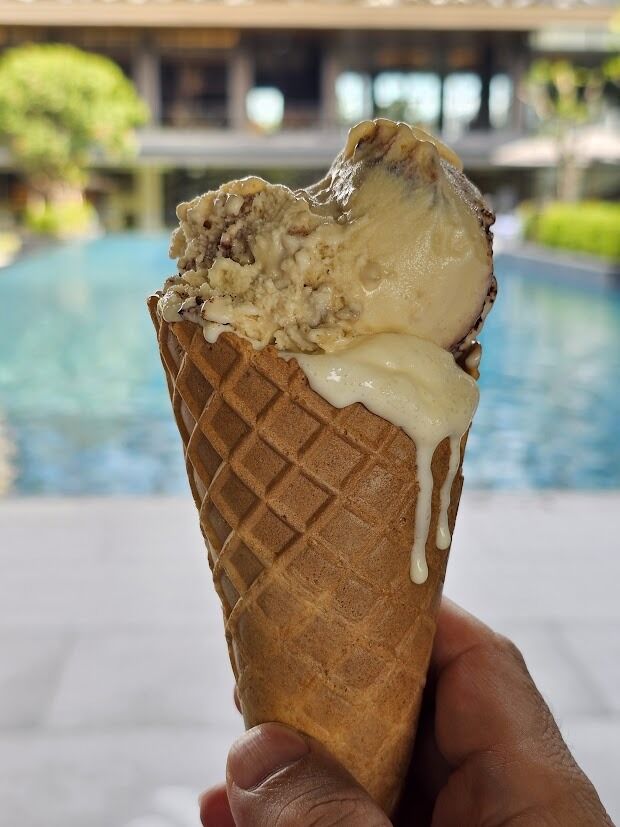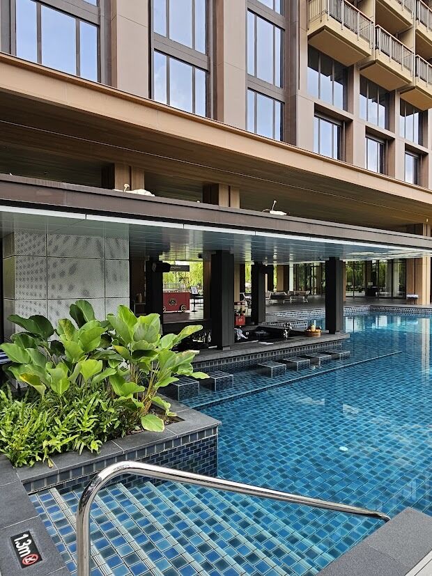 真ん中のプールを囲むように建物が建ってる。このプールがメチャメチャ広くて快適。完全にストレスフリーになれるよ。