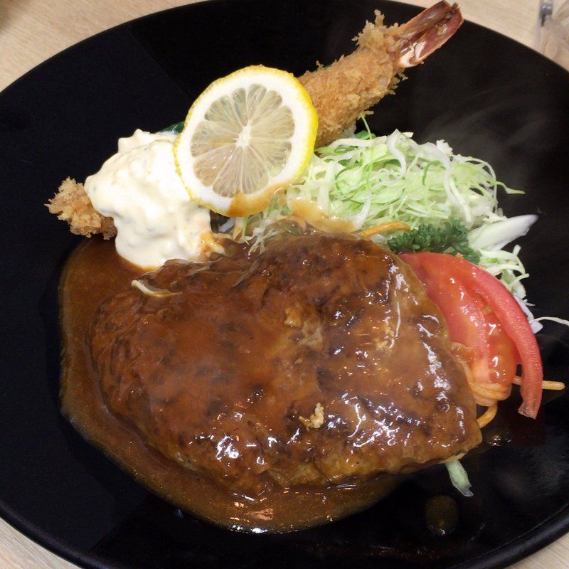 このハンバーグとエビフライが実に良く出来てる。豚汁も赤出汁でナイスやね。ここの料理はオススメやわ。他のメニューもぜひとも食べてみたい。地元に愛されてるお店やね。