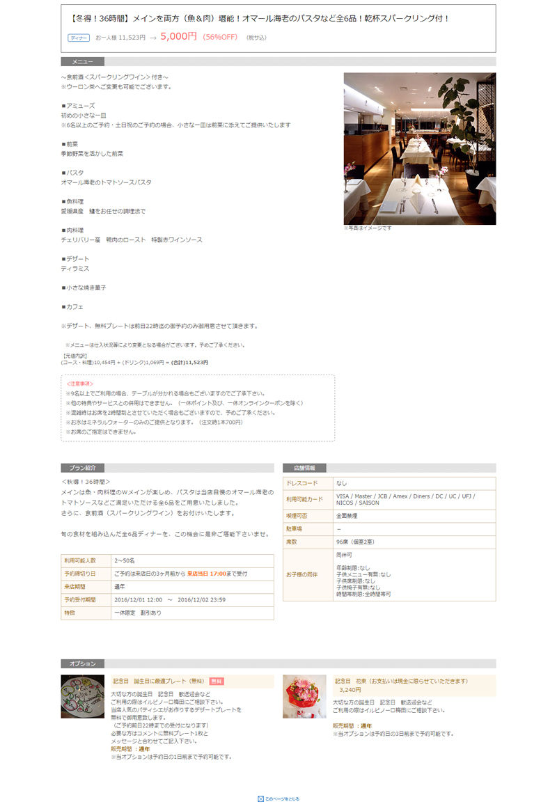 今日は一休レストランで予約して、梅田のヒルトンプラザウエストに入ってるイタリアン「イルピノーロ 梅田」に行ってみた。予約したプランは、【冬得!36時間】メインを両方(魚&肉)堪能!オマール海老のパスタなど全6品!乾杯スパークリング付!